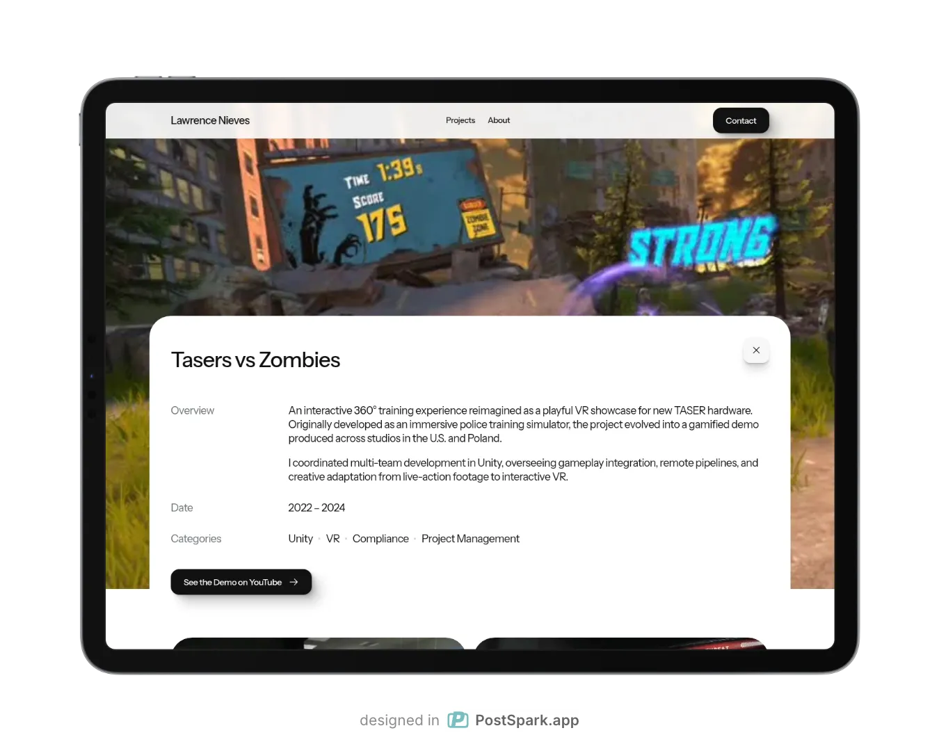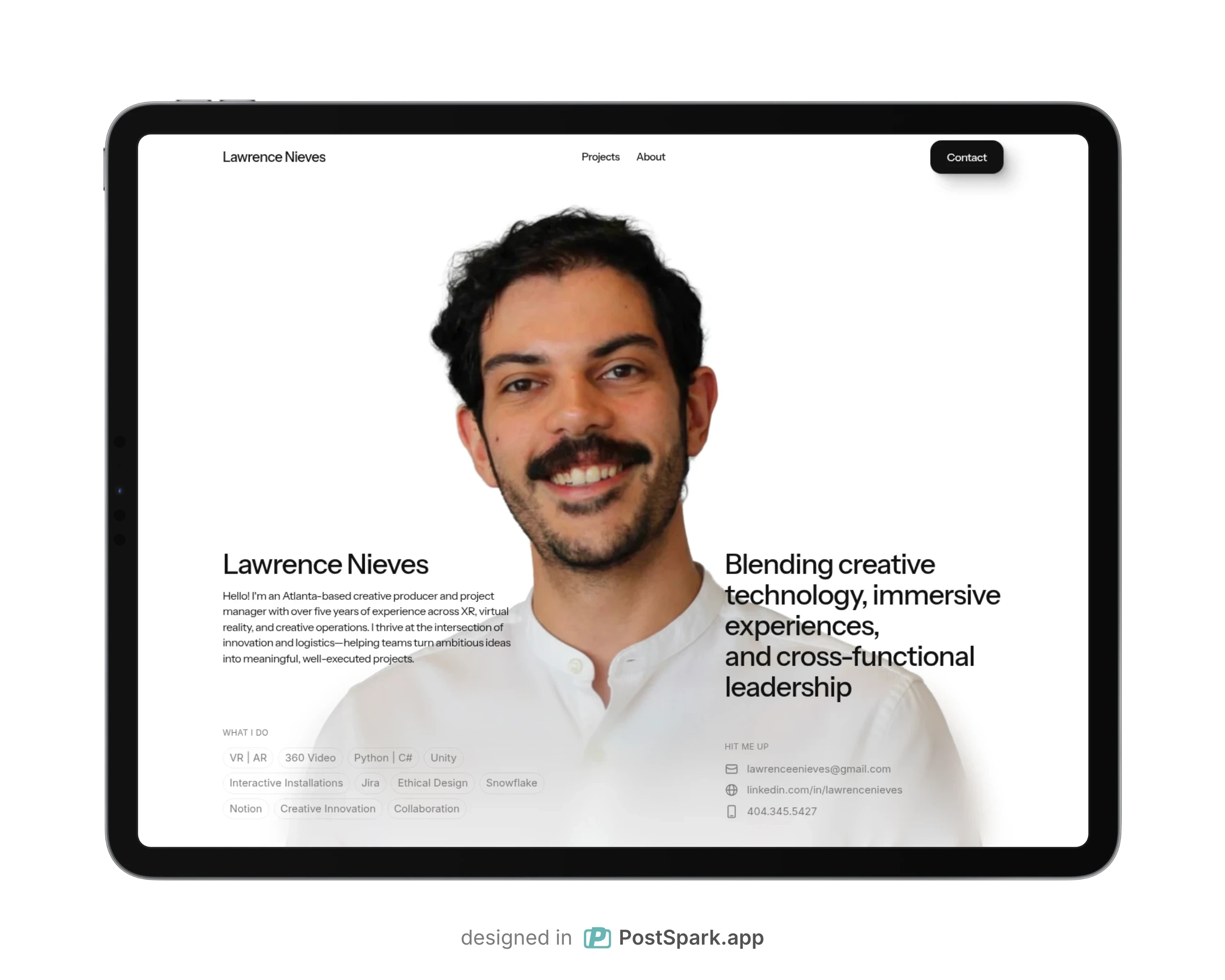 Designed to showcase multidisciplinary work and career growth with clarity and creativity. Custom components and light interactions immerse users through without detracting from the subject.