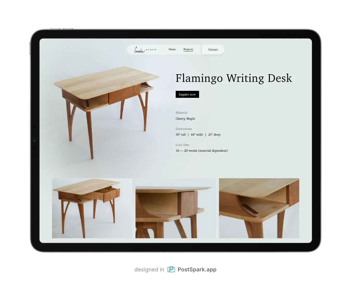 Visually driven site for a custom furniture studio. Photography was blended directly into the layout to create a curated, editorial feel.